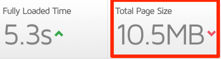 但是因为包含了大量图片,长篇博客文章的体积会变得很大。例如,根据 GTmetrix 的数据,我们的测试的页面体积为:
