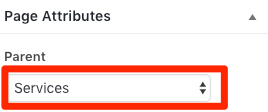 这在 WordPress 实现起来很简单。只需要在页面编辑器中点击上级下拉菜单,并选择“Service”页面即可。