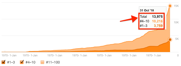 Ahrefs 博客还之于 1.4 万关键词排进 Google 搜索结果首页。