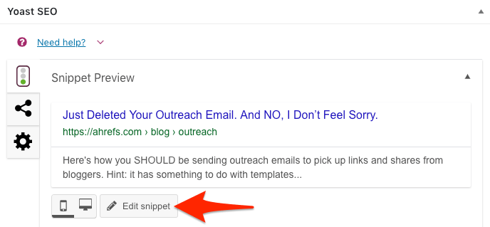 Yoast 可以逐页设置两个选项。在编辑页面或文章时,点击 Yoast 设置中的齿轮图片,你会看到如下图所示的界面: