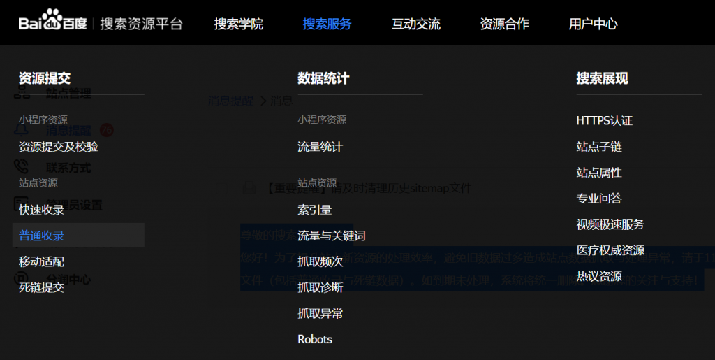 百度搜索资源平台Sitemap提交