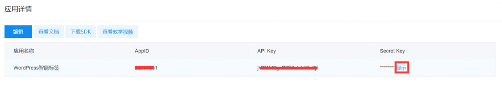 创建完应用,点击“查看应用详情”按钮获取应用接口信息。