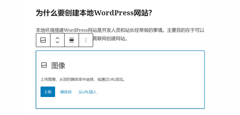 然后,您可以通过上传、媒体库和URL插入三种方式,添加图像,这与传统编辑器的方式相似。