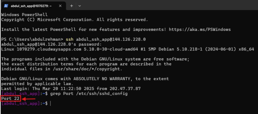 您可以通过运行以下命令来验证是否打开了正确的 SSH 端口: