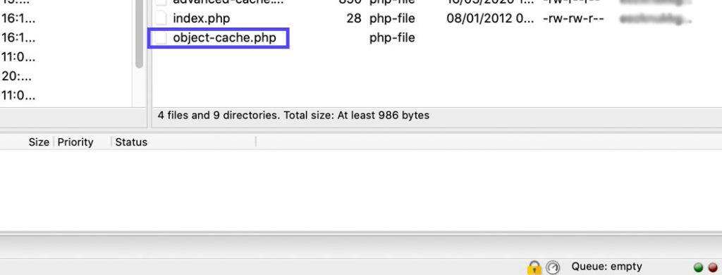 导航到您网站的/wp-content/文件夹并在那里找到object-cache.php文件。