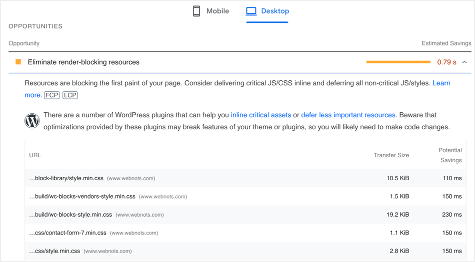 它只是减少了CSS文件,从而减少了对服务器的HTTP请求的页面大小。除此之外,删除未使用的CSS将有助于修复PageSpeed Insights工具中的以下项目。