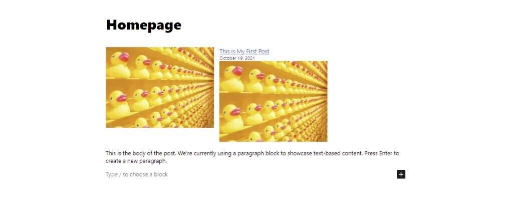 - 完成上述步骤后,您就可以开始了。这是新主页的示例,其中包含最新博客文章及其各自特色图片的列表。对于此示例,我们将文章内容设置为包含摘录以及发布日期,并将图像大小更改为左对齐的缩略图。