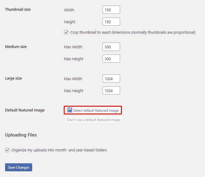 - 单击选择默认特色图像按钮并选择您想要的图像。