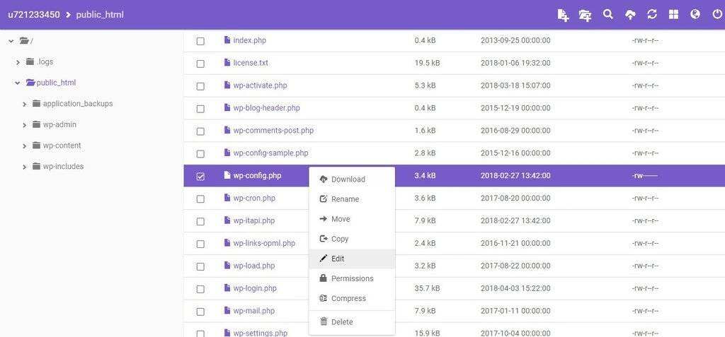 使用FTP或文件管理器,访问您的WordPress根目录并打开wp-config.php文件进行编辑。