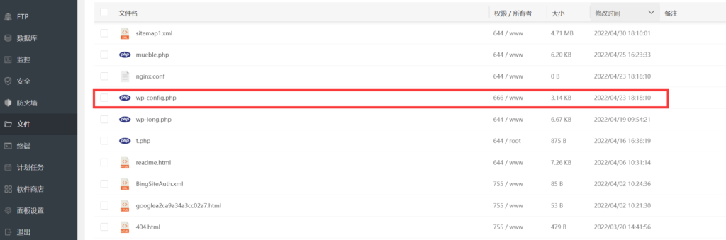 2. 从WordPress根安装文件夹访问wp-config.php文件。在大多数情况下,您可以在WordPress安装根目录中找到该文件。