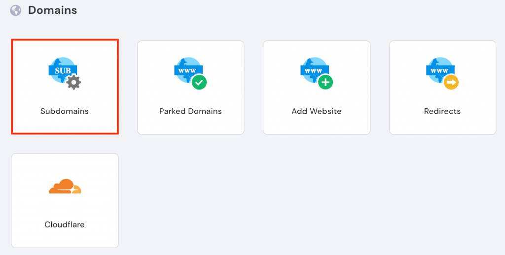 为此,您可以转到您的域名管理面板,然后选择域类别下的子域。(注:不同域名服务商,可能稍有不同)