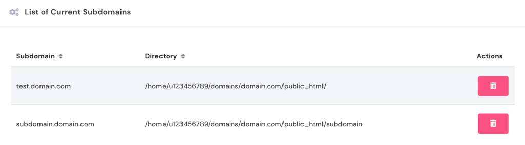 在空白字段中输入子域名,然后单击创建。您可以重复此步骤以创建多个条目。大多数时候,添加三个子域就足够了。