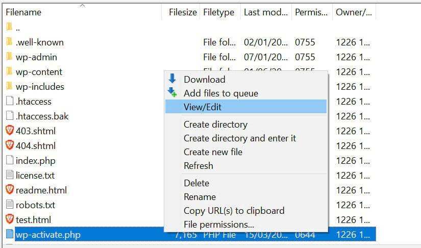 为此,请返回站点的根目录并找到wp-activate.php文件。