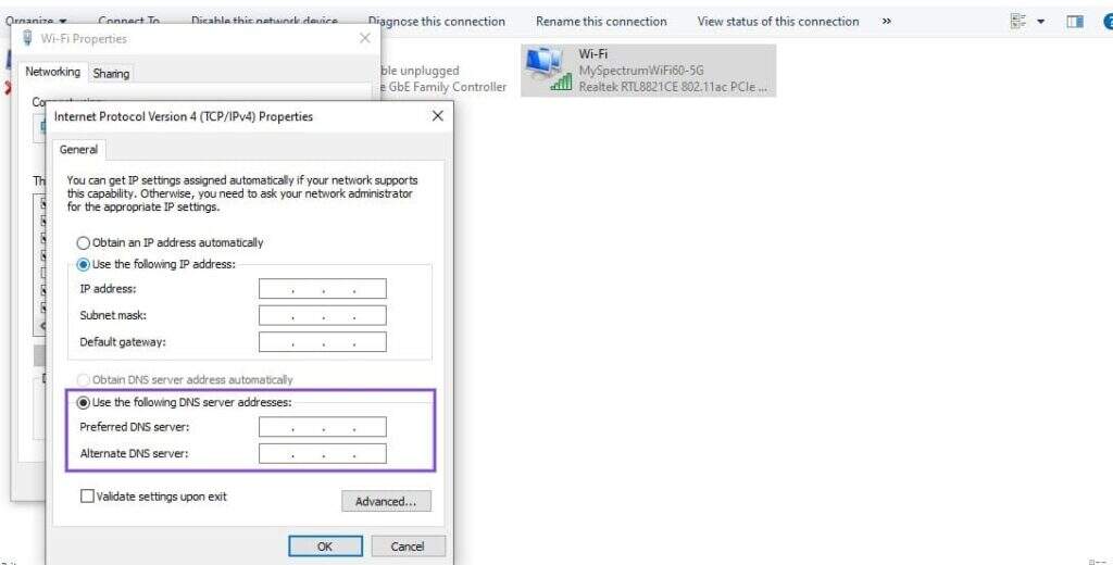 例如,您可以在首选DNS服务器下输入Google的DNS服务器,即“8.8.8.8” 。然后你可以在备用DNS服务器下添加“8.8.4.4” ,然后点击OK。
