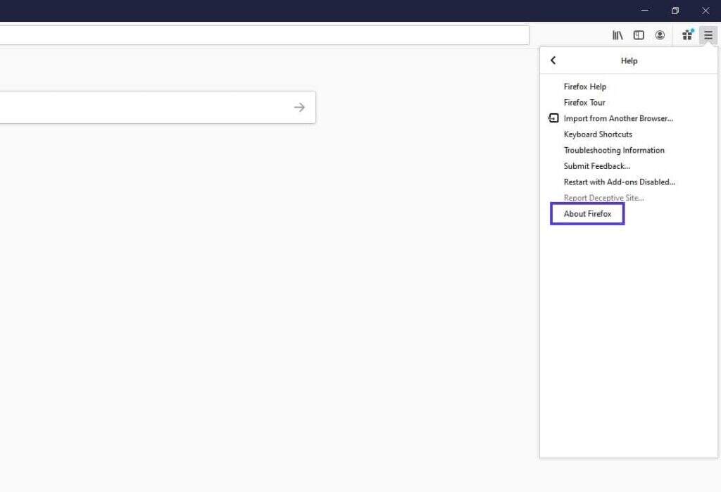 要将您的 Firefox 浏览器更新到最新版本,请打开浏览器,单击汉堡菜单图标,然后导航至“帮助” >“关于Firefox”: