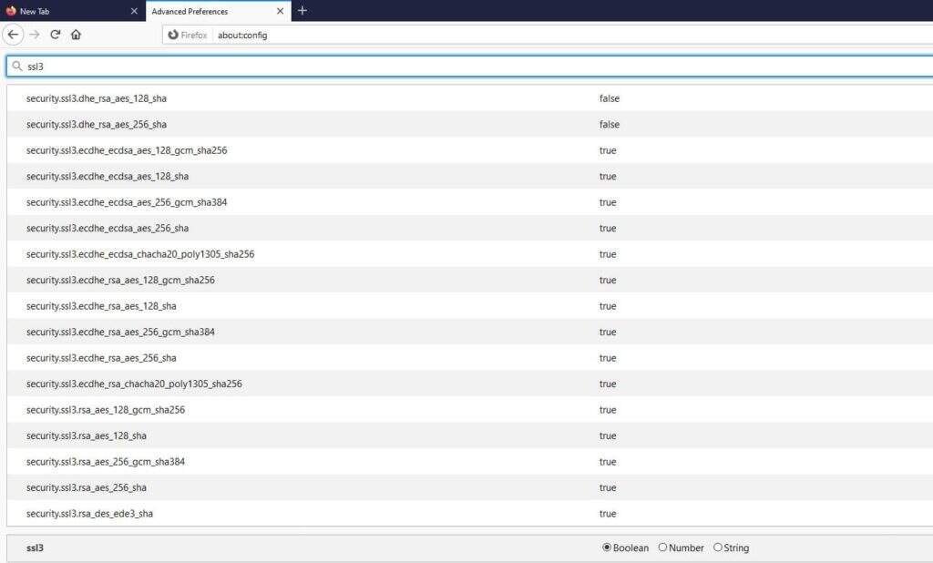 接下来,对SSL3重复相同的过程。在搜索栏中键入“ssl3”,并重置任何最近更改的值: