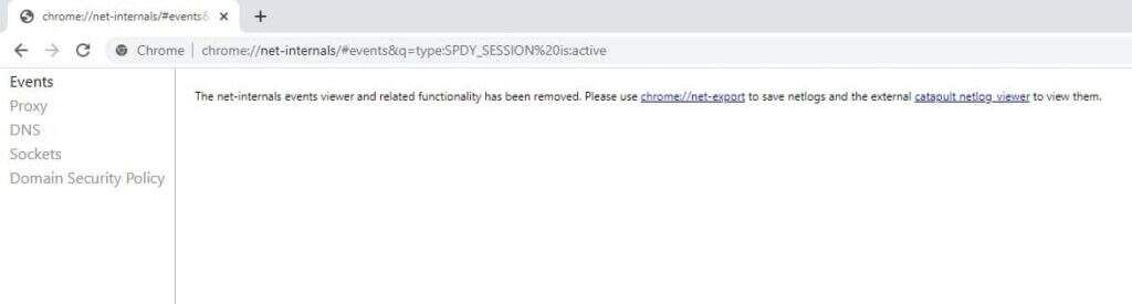 可以解决 ERR_SPDY_PROTOCOL_ERROR 的另一个解决方案是刷新“SPDY Pockets”。为此,请打开Chrome浏览器并键入或复制以下内容并将其粘贴到URL栏中: