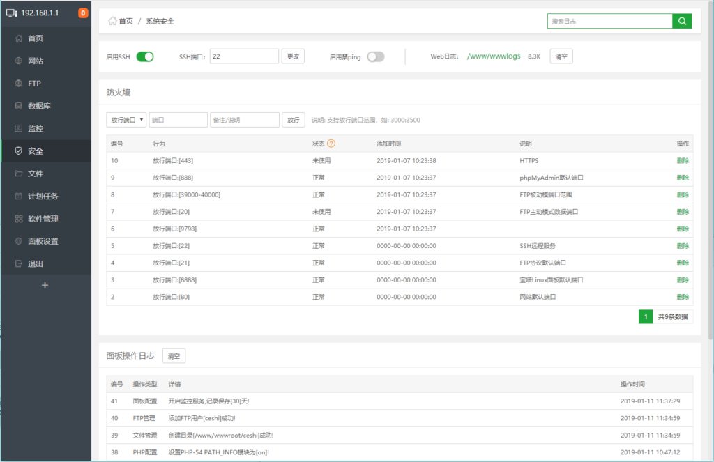 宝塔面板日志管理