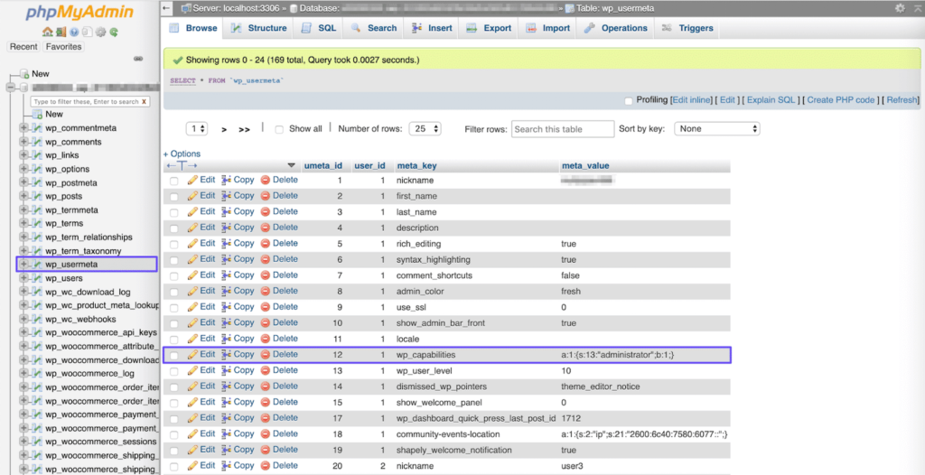 phpMyAdmin中的wp_usermeta表