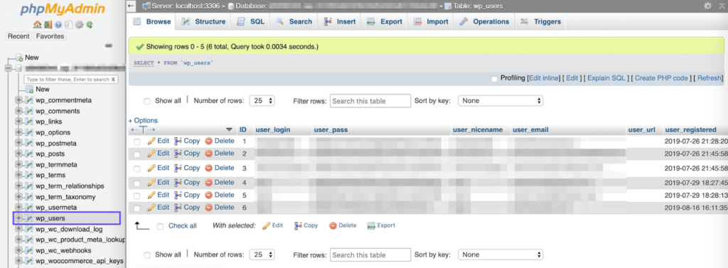 phpMyAdmin中的wp_users表