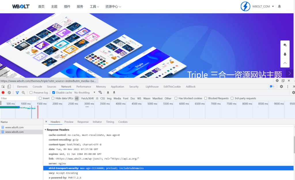 在这里,您可以看到 strict-transport-security: max age=31536000响应头。