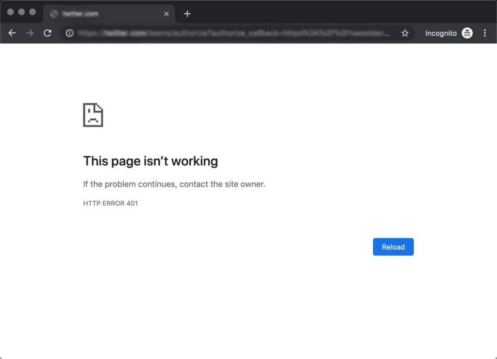 例如,在Chrome或Edge中,您可能会看到一个纸质图标以及一条简单的消息,告诉您相关页面无法正常工作。它将在底部包含短语“HTTP Error 401”,并指示您在问题仍然存在时联系该站点的所有者: