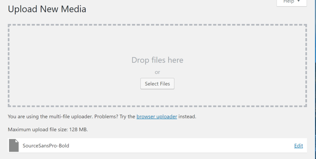 这是我们尝试将.woff文件上传到我们的测试站点的示例: