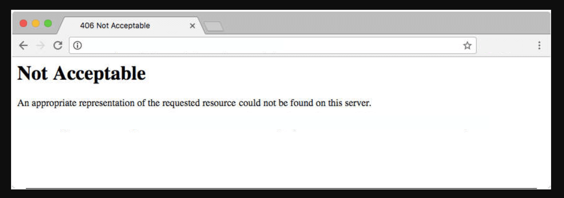 在这种情况下,404错误比406错误更有可能发生,但如果网站URL有效,您最终可能会看到“406 Not Acceptable”错误。然而,浏览器转换请求的方式有些奇怪。例如,在URL末尾添加“JSON”或“PHP”可能会被误解为对这些特定格式的请求,即使客户端不需要它们。