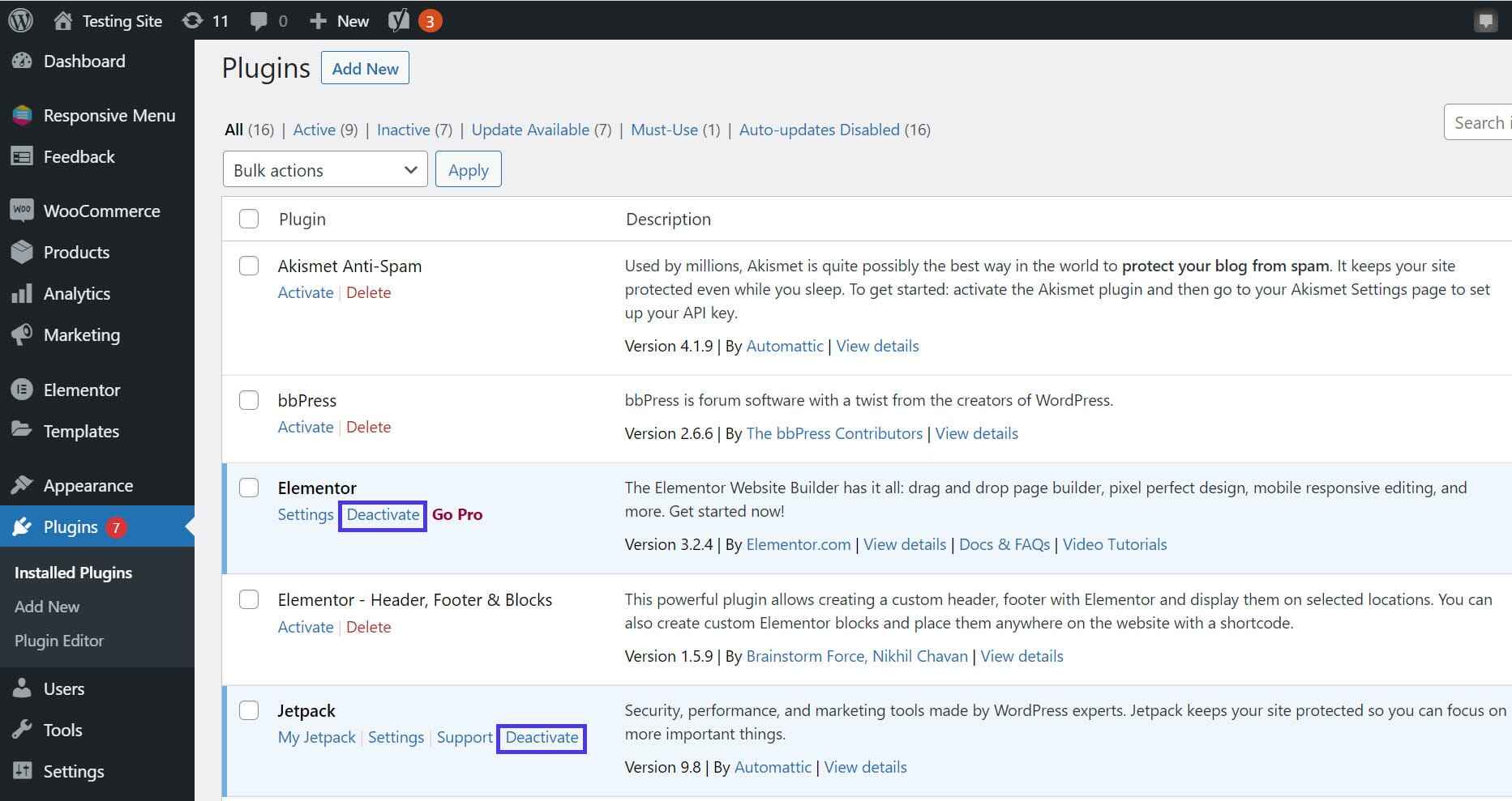 转到WordPress中的插件选项卡并一个一个地停用每个插件。