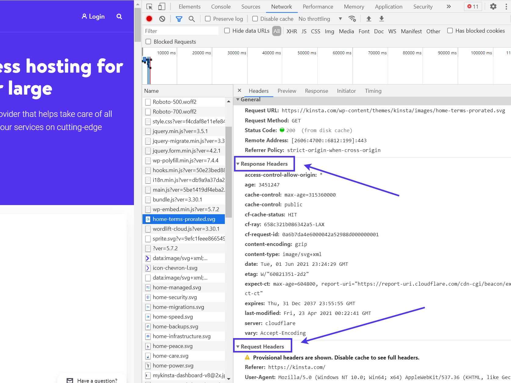 单击列表中的任何请求以查看诸如Response- 和 Request-标头之类的内容