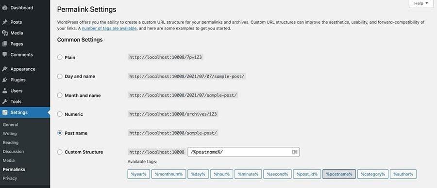 删除此文件,然后切换到您的WordPress仪表盘。您现在可以导航到设置 > 固定链接。
