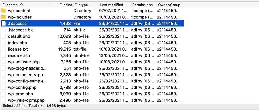 一些黑客可能会尝试将代码插入到.htaccess文件(没找到这个文件?)中。要清理此文件,请使用SFTP客户端连接到您的站点。然后导航到您的public_html 目录,其中包含.htaccess 文件。