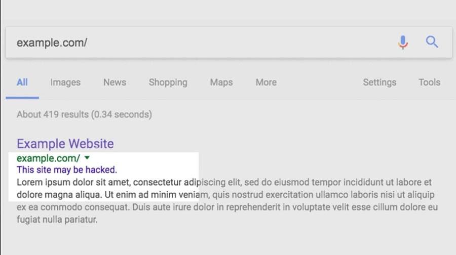 当被入侵的网站出现在搜索引擎结果页面 (SERP) 中时,某些引擎会在相关网站旁边显示附加警告。例如,Google的SERP警告包括“此网站可能会损害您的计算机” 和“这个网站可能已遭入侵”。