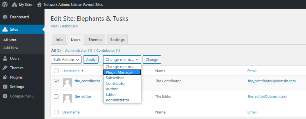WordPress多站点网络中的管理员角色的定义略有不同,但名称相同。在多站点网络中,管理员角色不享有在WP单站点中具有的某些权限,例如安装主题和插件。WordPress为超级管理员角色保留了这些权限。