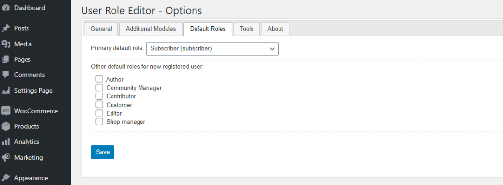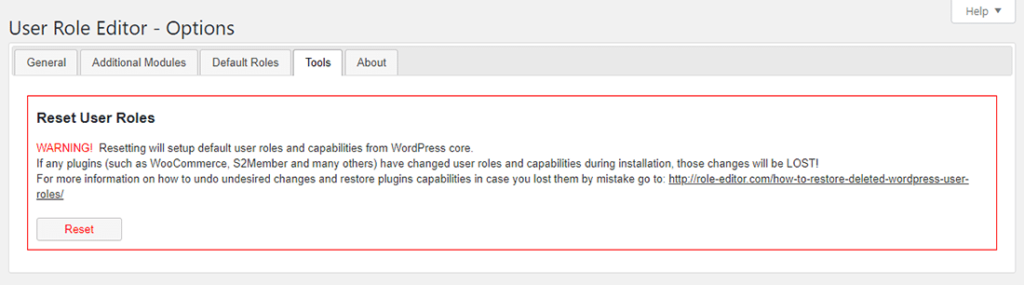 如果您在管理仪表盘中转到Settings > User Role Editor,您还将找到用户角色编辑器插件的其他选项。