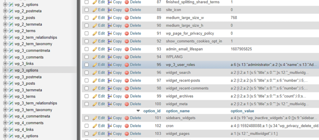 注意:您的设置中的wp_前缀可能不同。这取决于站点文件wp-config.php中$table_prefix全局变量的值。