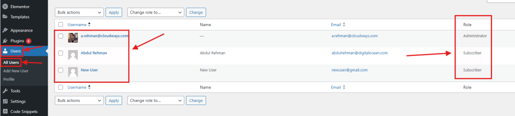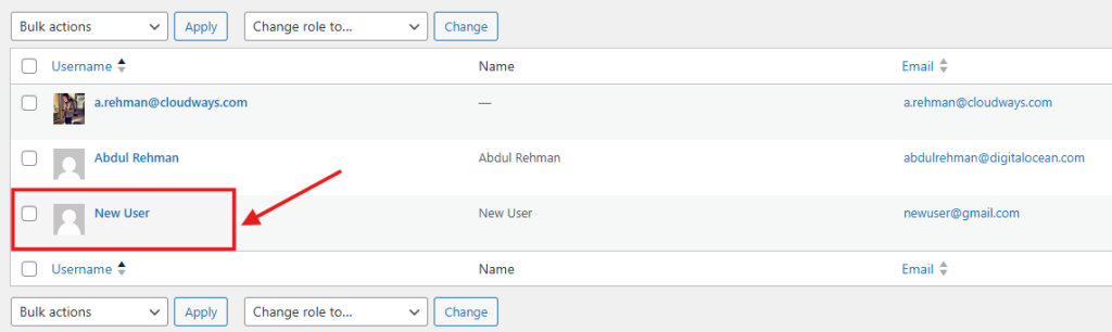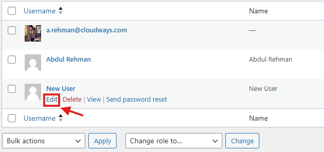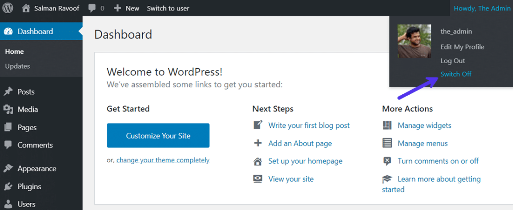 安装并激活插件后,访问仪表盘中的Users菜单。您将看到每个用户的Switch To链接。单击此按钮将切换到您想要的用户。