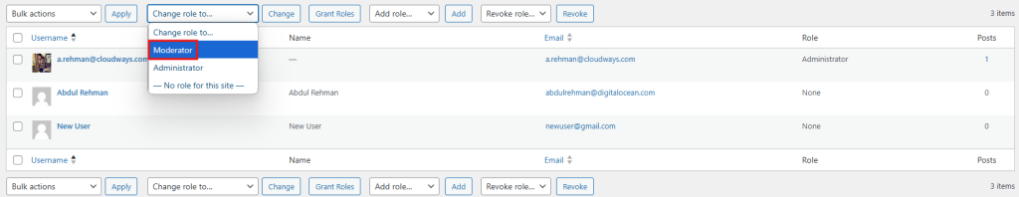 如果您必须将站点上的大量用户从一个角色迁移到另一个角色,此功能将非常方便。