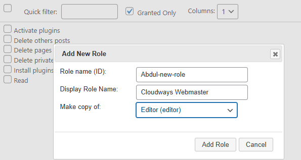 注意: WordPress包含另一个名为WP_Role的核心类(注意单数“Role”)。它用于扩展用户角色API。