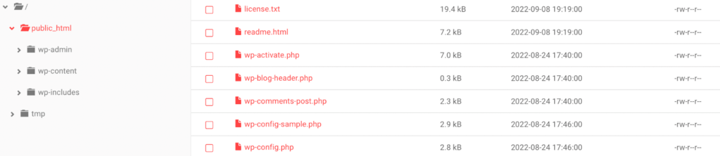 您可以在 public_html 文件夹中找到该文件。在截图底部,你可以看到 wp-config.php: