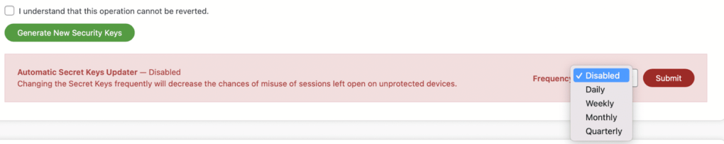 您还可以设置更新密钥的时间表。只需使用下拉菜单选择最适合您网站的时间框架。然后点击 Submit。