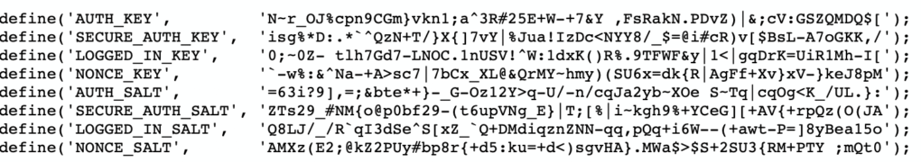 要使用这种方法,您需要从 WordPress 密钥生成器中获取新的安全密钥和 salt 值:
