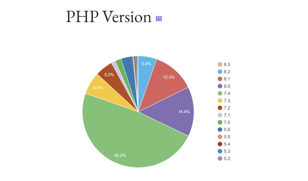 WordPress 网站 PHP 使用情况。(图片来源:WordPress.org)