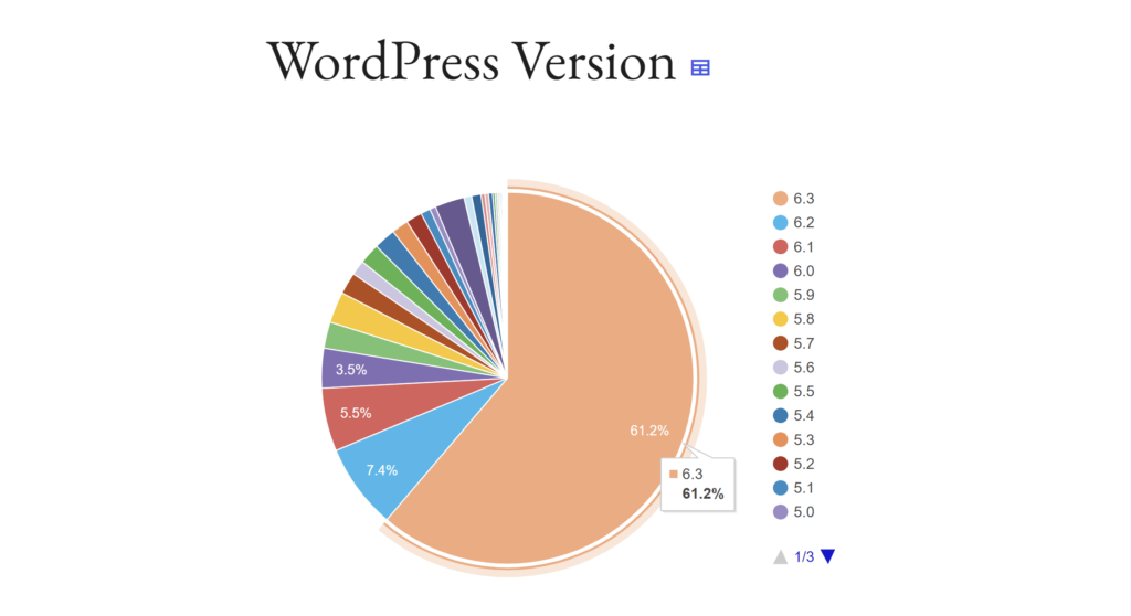 按版本划分的 WordPress 使用情况。(图片来源:WordPress.org)