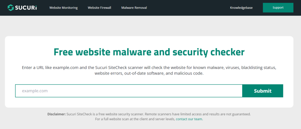 网上有数十种扫描仪可供选择,我们将在下面的工具部分列出其他一些扫描仪,但现在,让我们选择一种易于使用的流行扫描工具:Sucuri SiteCheck。