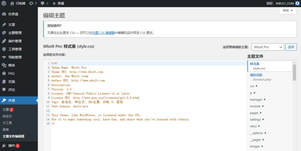 在您的前端有一个可见的WordPress版本可以告诉黑客您网站上存在哪些漏洞。特别是如果您使用的是过时版本的WordPress,您可能希望隐藏此信息。您会注意到后端中的外观>主题编辑器和插件>插件编辑器下的文件编辑器。