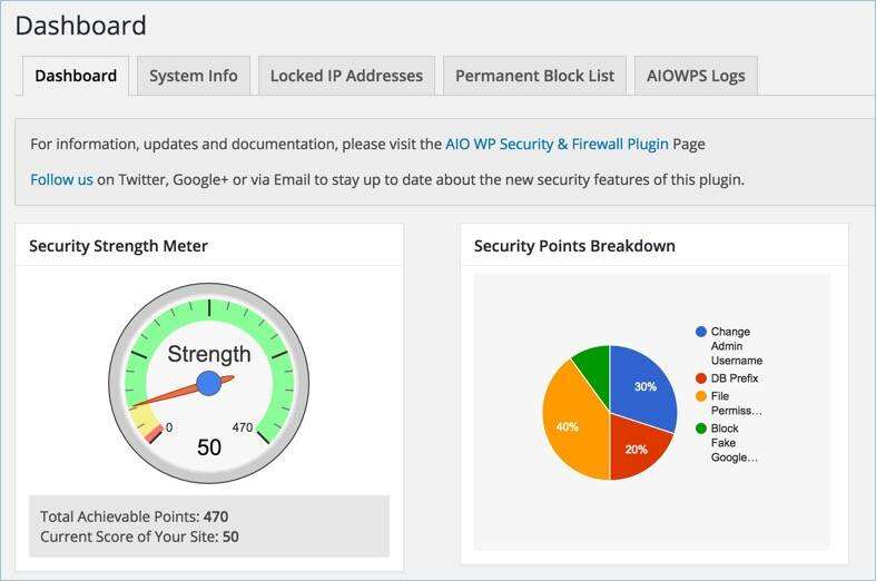 All in One WP Security & Firewall插件仪表盘