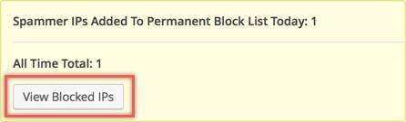 单击“View Blocked IPs”按钮将带您进入“Dashboard > Permanent Block List”并显示永久阻止的IP列表。
