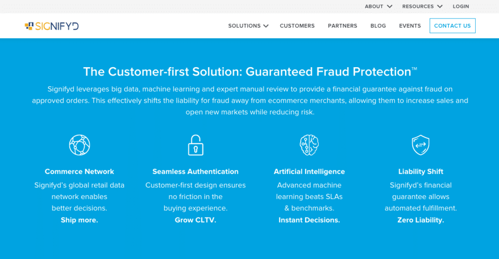 Signifyd的规模可伸缩以适应大型和小型企业,是最先寻找欺诈预防软件的地方之一。它在您商店的后端运行,并根据欺诈的可能性为每次购买分配一个“分数”。
