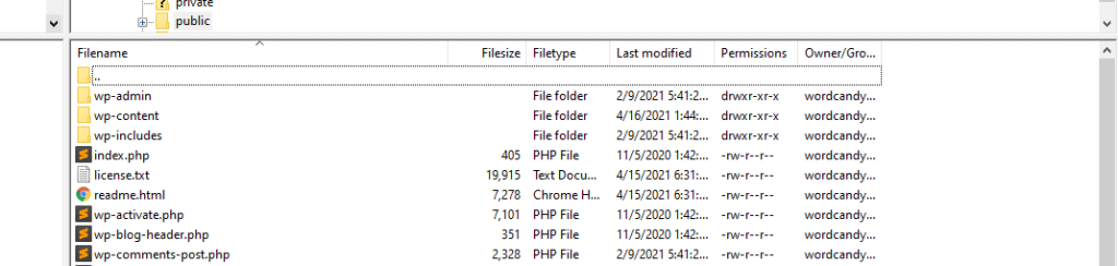 使用这些凭据,您将能够连接到您的服务器并找到您的WordPress根目录。在许多情况下,该目录称为public 。要开始,请继续复制或下载整个文件夹: